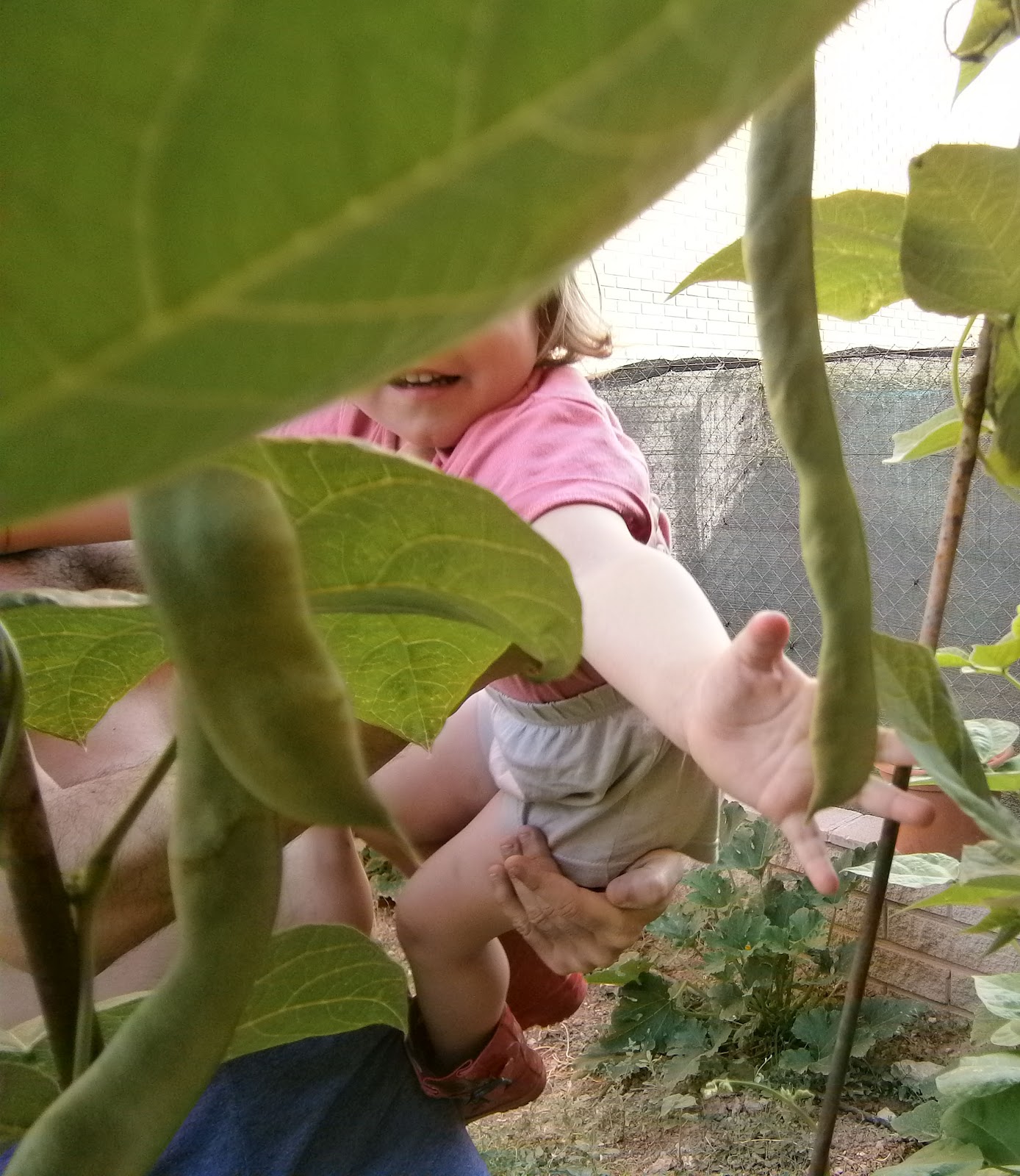 Un altre dels motius pels que hem conservat l'hort, encara que petit, és perquè la petita hi pugui participar. De fet, és el primer any que se n'adona bé de tot. Ens ajuda a regar, a recollir els fruits, i quan ens ho mengem a taula diu "he collit jo!".