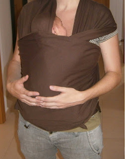 - Molta gent parla de que es pot donar el pit sense treure't el nen del mocador. Jo de moment no ho trobo pràctic! Potser quan el nen aguanti el cap i pugui buscar més activament la popa sí que m'anirà bé, però ara no m'ho sé imaginar!