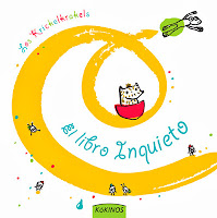 Ara també en tenim un de semblant, El libro inquieto, de l'editorial Kokinos. El principi és similar, tot i que la història no és tan senzilla com la del llibre anterior. Aquí es basa en seguir uns animals, als que el nen ha d'anar guiant a partir de realitzar diferents accions com cantar, fer diferents sons i moviments, marcar uns números en un telefon que apareix i fins i tot fer un petó a una granota. Tot i que el llibre és molt colorista i visualment atractiu per nens petits, jo el recomano per nens a partir de 3 anys o més, ja que la història que s'explica és llarga i s'ha d'estar atent.