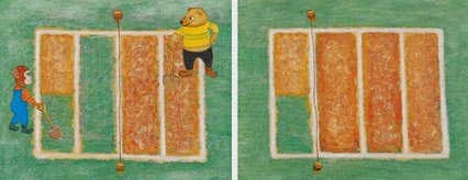 Una forma entretinguda d'ensenyar a fer fraccions a través de situacions que ens trobem també en la nostra vida quotidiana. I agrada molt als nens ja que es posen en el paper dels dos veïns i des de l'inici vetllen per tal que les reparticions siguin justes i ningú no es quedi sense el que li toca!
