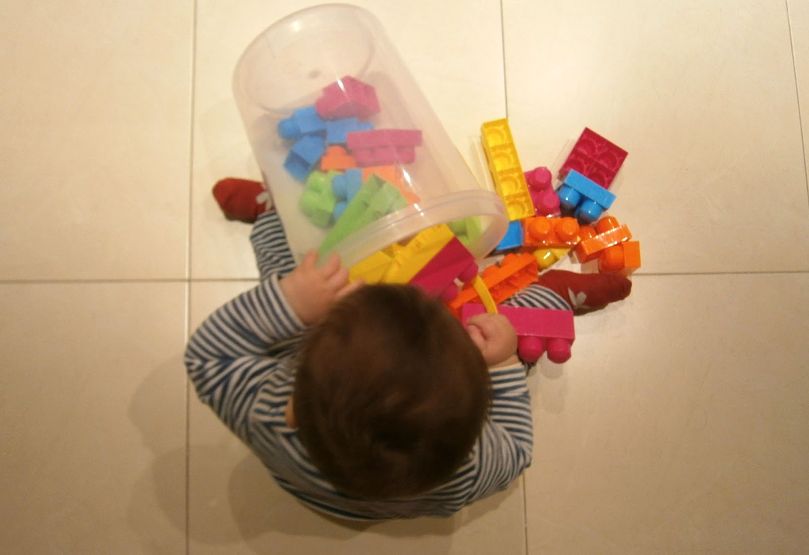 Joc: Juga amb la panera dels tresors, però és complicat que la tingui sempre al seu lloc i plena de tot el que hi hauria d'haver, a causa de la intervenció de la seva germana! Però bé, ell també "juga", és a dir, xupa les joguines d'ella (des de les fustetes a la caixa registradora), així que estan empatats!